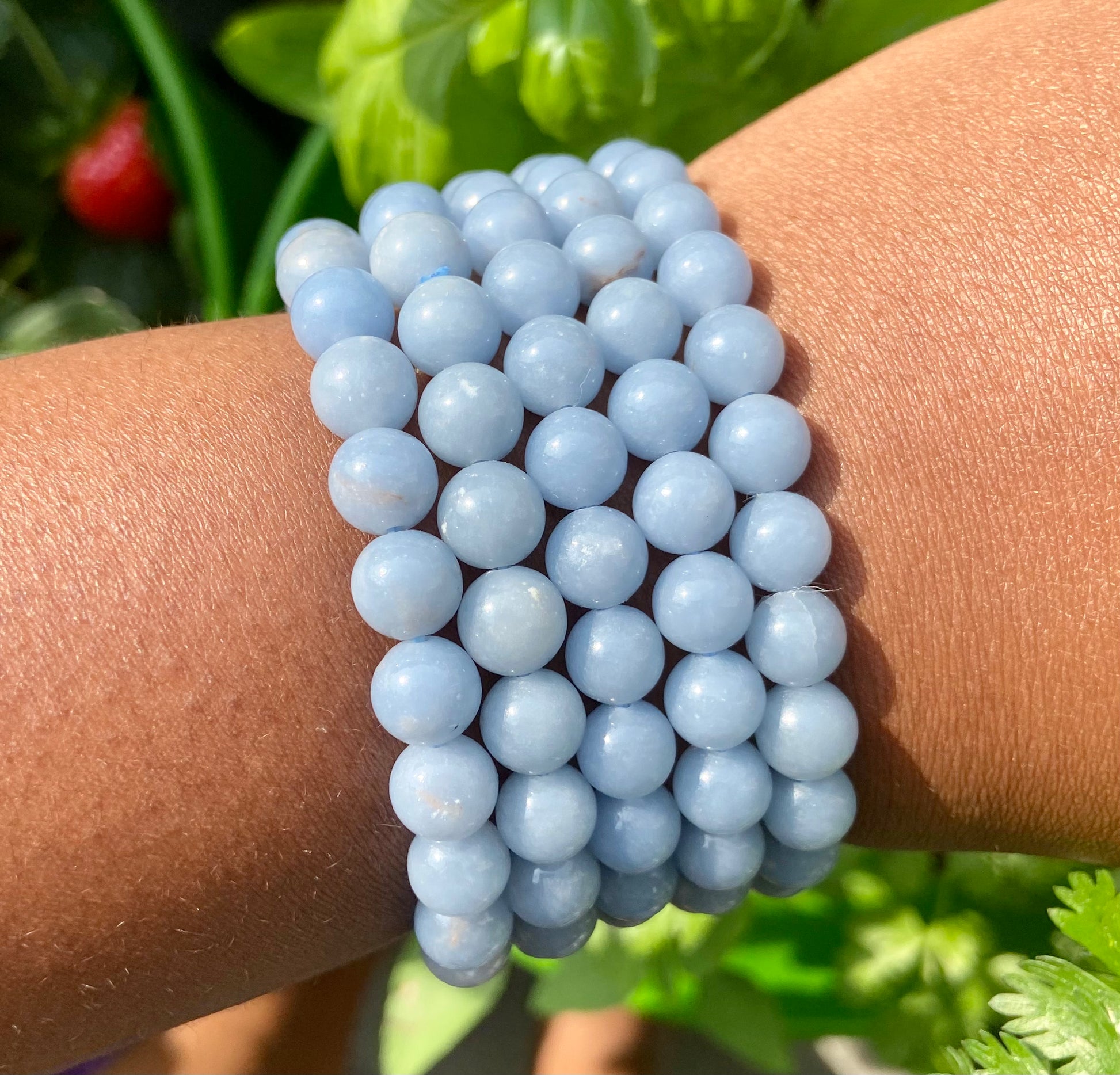 Angelite is associated with the wind and brings the spiritual energies of power, healing, love, and protection.