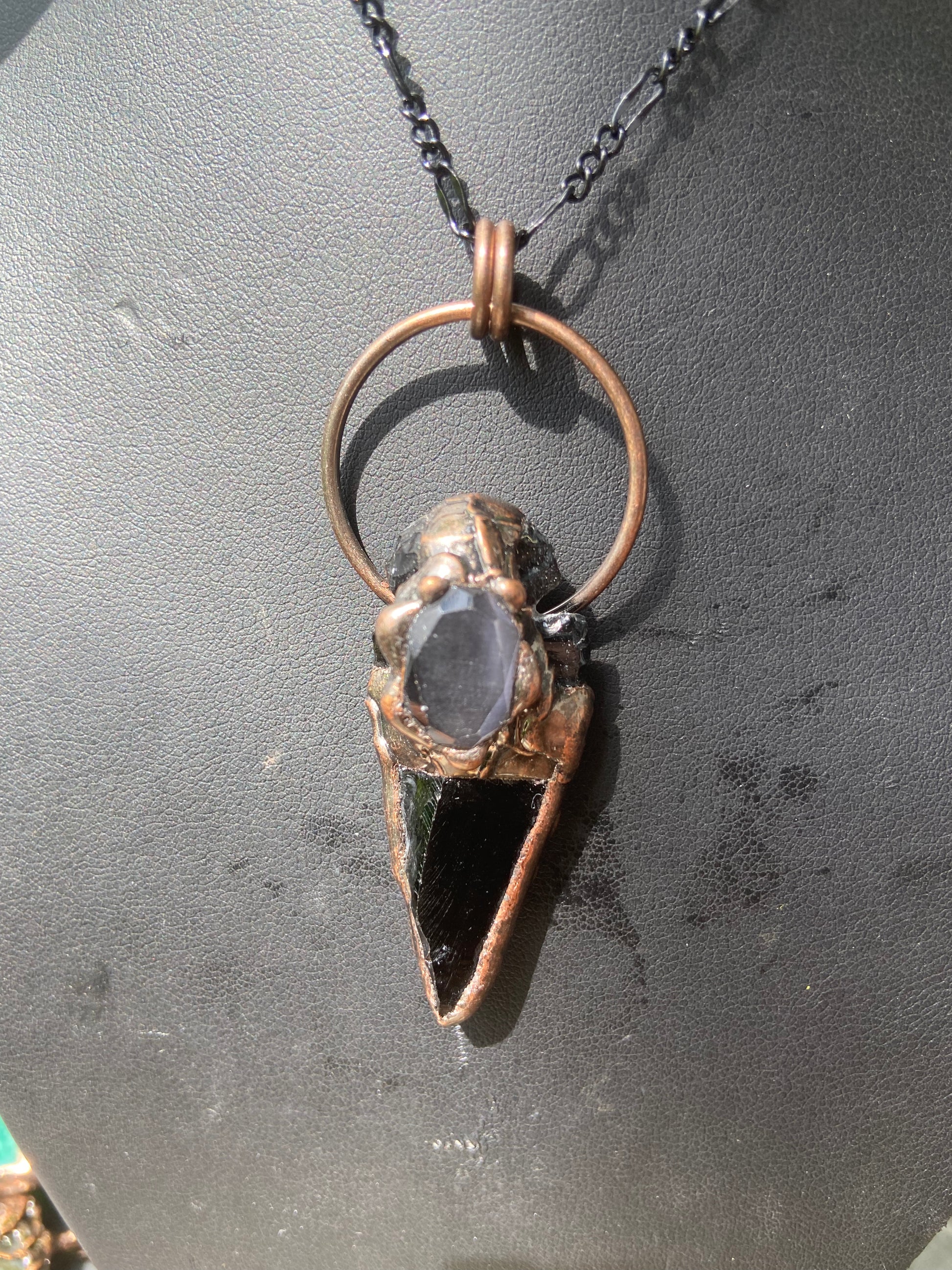Electroformed black obsidian necklace with Quartz decoration.